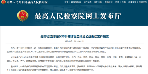 最高檢掛牌督辦33件破壞生態(tài)環(huán)境公益訴訟案件線索
