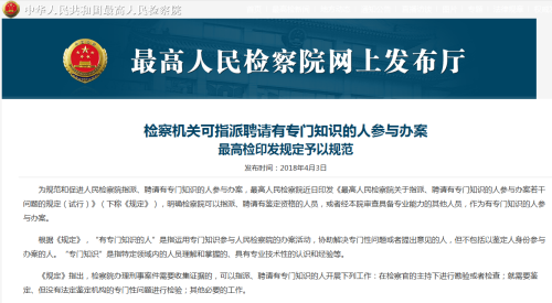 為規(guī)范和促進(jìn)人民檢察院指派、聘請(qǐng)有專門知識(shí)的人參與辦案,最高檢近日印發(fā)《最高人民檢察院關(guān)于指派、聘請(qǐng)有專門知識(shí)的人參與辦案若干問題的規(guī)定(試行)》,明確檢察院可以指派、聘請(qǐng)有鑒定資格的人員,或者經(jīng)本院審查具備專業(yè)能力的其他人員,作為有專門知識(shí)的人參與辦案!兑(guī)定》指出,檢察院辦理刑事案件需要收集證據(jù)的,可以指派、聘請(qǐng)有專門知識(shí)的人開展下列工作:在檢察官的主持下進(jìn)行勘驗(yàn)或者檢查;就需要鑒定、但沒有法定鑒定機(jī)構(gòu)的專門性問題進(jìn)行檢驗(yàn);其他必要的工作。