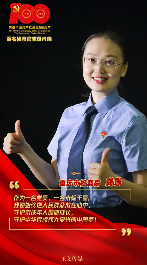 龔珊,重慶市人民檢察院檢察八部,檢察官助理,37歲,黨齡17年。