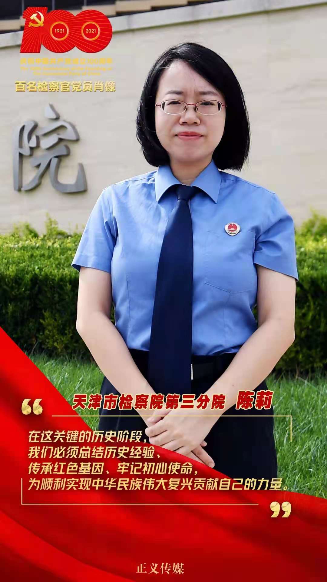 陳莉,天津市檢察院第三分院一級檢察官,年齡40歲,黨齡14年。