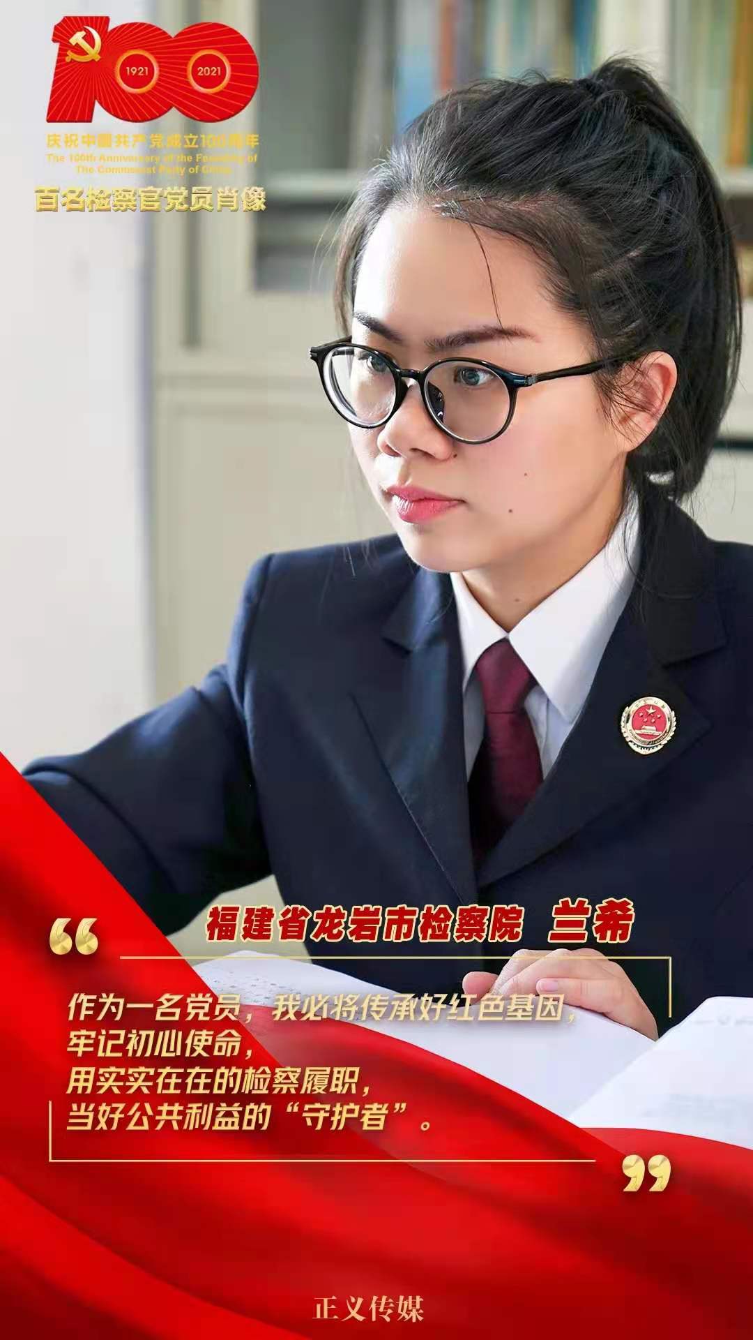 蘭希,福建省龍巖市檢察院檢察官,年齡35歲,黨齡14年。