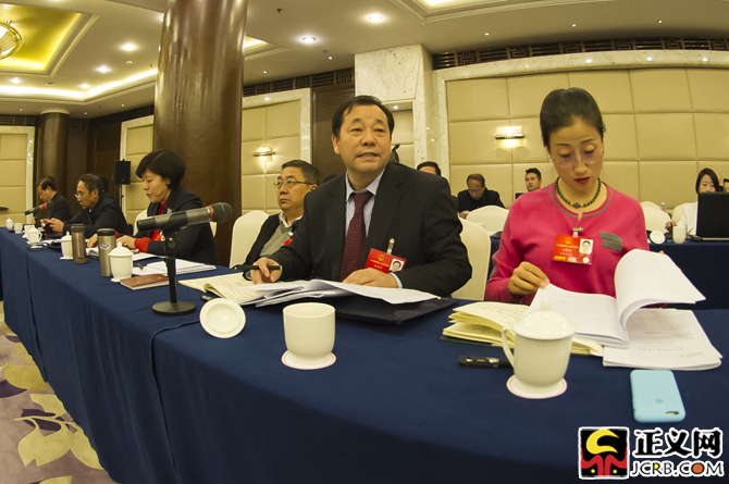 3月14日,甘肅代表團(tuán)舉行小組會(huì)議,審議兩高報(bào)告。全國(guó)人大代表趙滿堂表示,兩高一直以來都注重自身隊(duì)建設(shè),也注重聽取人大代表和政協(xié)委員的意見建議。正義網(wǎng)記者程丁攝