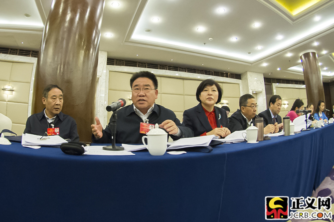 3月14日,甘肅代表團(tuán)舉行小組會(huì)議,審議兩高報(bào)告。全國(guó)人大代表、張掖市委書記毛生武認(rèn)為,今年兩高報(bào)告文風(fēng)樸實(shí),數(shù)據(jù)詳實(shí)。他建議在深化司法體制改革中,檢察官、法官隊(duì)伍建設(shè)應(yīng)充分考慮地方實(shí)際情況。正義網(wǎng)記者程丁攝
