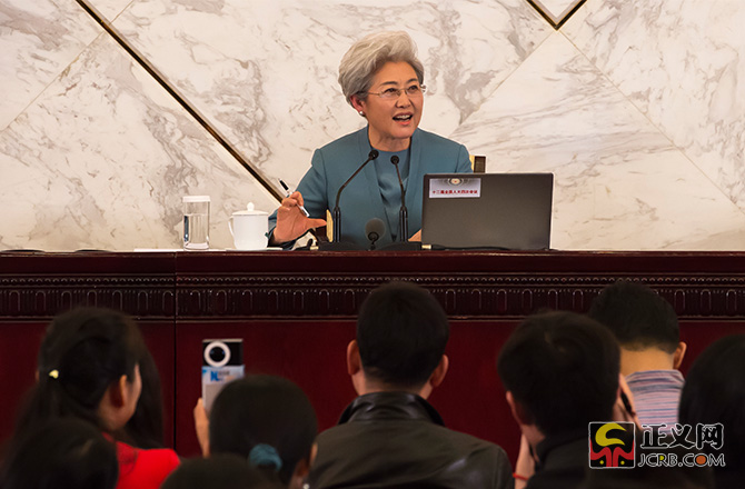 3月4日,十二屆全國人大四次會議在人民大會堂舉行新聞發(fā)布會,大會發(fā)言人傅瑩回答中外記者的提問。本次發(fā)布會共有18名中外記者提問,其中11位記者提問涉及法治話題,占提問總數(shù)的61%。民法典的編纂工作、慈善法、推進全面依法治國、全國人大審議境外非政府組織管理法草案、全國人大立法、反腐敗、《中華人民共和國反家庭暴力法》、稅收法、涉黃涉毒或者微博禁言的演員、政府依法行政、《大氣污染防治法》等。正義網(wǎng)記者程丁攝