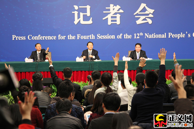 “我們‘十三五’目標是要農產品質量安全水平進一步提升。不僅讓老百姓吃飽、吃好,還要吃得安全! 3月7日上午,農業(yè)部部長韓長賦在十二屆全國人大四次會議記者會上表示。正義網記者徐伯黎攝