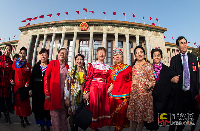 3月5日上午,第十二屆全國(guó)人民代表大會(huì)第四次會(huì)議在人民大會(huì)堂開幕,國(guó)務(wù)院總理李克強(qiáng)作政府工作報(bào)告,審查計(jì)劃報(bào)告和預(yù)算報(bào)告。新疆代表團(tuán)代表著盛裝出席會(huì)議。正義網(wǎng)記者程丁攝
