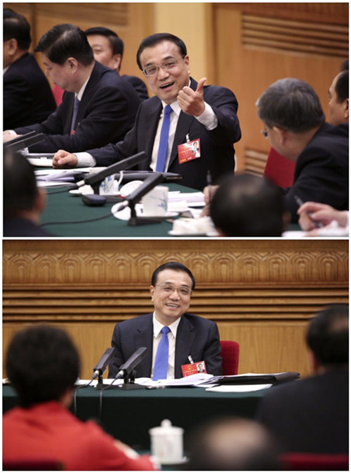 3月6日,強(qiáng)哥參加十二屆全國(guó)人大四次會(huì)議山東代表團(tuán)審議時(shí),貌似心情還不錯(cuò)。從照片上看,強(qiáng)哥笑容滿面,和顏悅色,當(dāng)天還談到“去年困難比預(yù)料的多,結(jié)果比預(yù)想的好!碧岬桨l(fā)展時(shí),強(qiáng)哥還說了:“我們發(fā)展的目的是為了讓人民過好日子!闭x君感激涕零,無以言表!