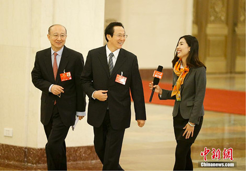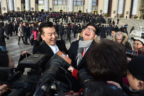 3月5日,全國(guó)人大代表、中國(guó)中央電視臺(tái)節(jié)目主持人張澤群和東方衛(wèi)視主持人曹可凡兩大名嘴在會(huì)場(chǎng)外被眾多媒體圍堵,兩人在鏡頭前開懷大笑。據(jù)說他們?cè)诤粲趺襟w傳播正能量,正義君想說,隔著屏幕都能感受到的超強(qiáng)能量波,已經(jīng)get到啦!