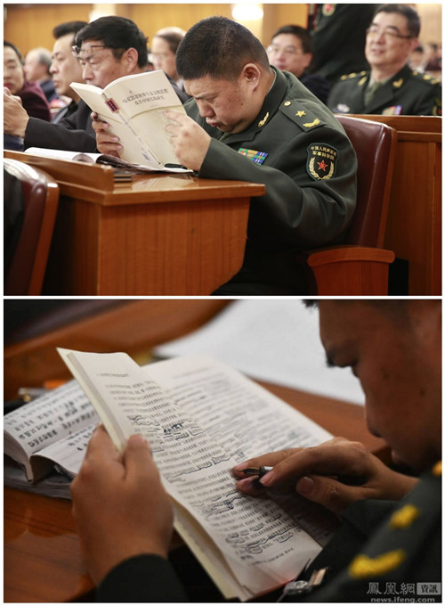 認(rèn)真開會(huì)的代表委員一定不少,這張一定能作為范本。在大會(huì)開始前,全國(guó)政協(xié)委員毛新宇攢眉蹙額,面部肌肉緊繃,全神貫注地閱讀隨身攜帶的《馬克思恩格斯生態(tài)文明思想及其中國(guó)實(shí)踐研究》,而且認(rèn)真畫批注,筆記字跡整齊,鋼筆墨染黑手指。