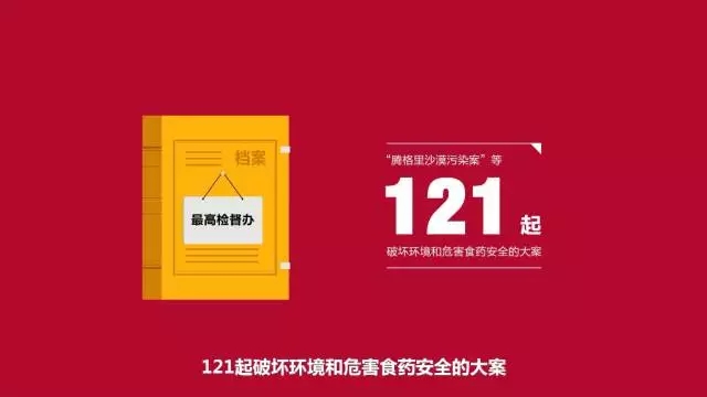 2015年3月至12月,最高檢還掛牌督辦了“騰格里沙漠污染案”等121起破壞環(huán)境和危害食藥安全的大案,贏得點(diǎn)贊無數(shù)!