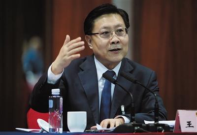 昨日,四川省委書記王東明在四川代表團(tuán)全體會(huì)后回答記者提問。新京報(bào)記者 陳杰 攝