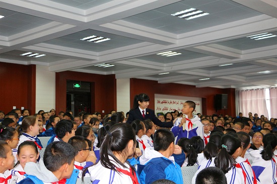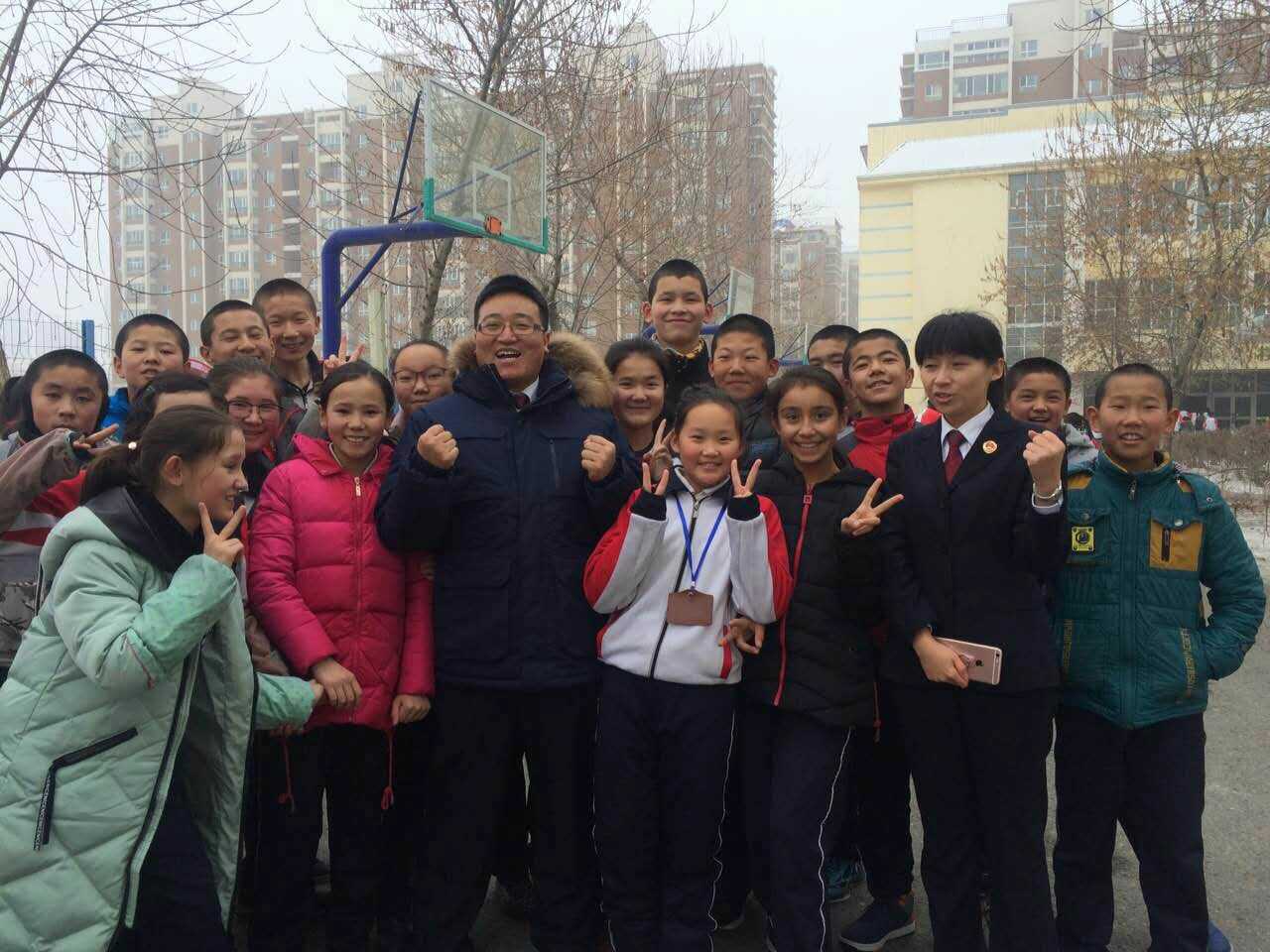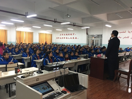 在新疆自治區(qū)和新疆建設(shè)兵團(tuán)的巡講歷時(shí)21天,累計(jì)行程超過(guò)30000公里,在10所學(xué)校,為同學(xué)們帶去了26課時(shí)的課程。我們一路上感受著大雪紛飛的雪域新疆,感受著全國(guó)檢察人、教育者的溫情,感受著新疆維吾爾族、哈薩克族等少數(shù)民族的質(zhì)樸、真誠(chéng)、率真的性情。我們一路上為孩子們帶去一場(chǎng)又一場(chǎng)精彩的法治課,同時(shí)一路上也一場(chǎng)又一場(chǎng)的感受著孩子們對(duì)我們純真、熱情、質(zhì)樸、溫暖的愛。無(wú)論是在大雪紛飛的零下氣溫,還是一遍遍的模擬排練,還是在大地震動(dòng)生命攸關(guān)時(shí),孩子們的表現(xiàn)總能帶給我們驚喜、欣慰、傳遞著正能量。課堂上的陣陣掌聲、踏腳聲、歡笑聲、吶喊加油聲,潤(rùn)物細(xì)無(wú)聲的讓孩子們學(xué)習(xí)了相關(guān)法律、自護(hù)等知識(shí),課堂后的圍堵、合影、學(xué)著用民族語(yǔ)言交流拉近了彼此距離,也表達(dá)著彼此的愛。當(dāng)少數(shù)民族孩子們聽到我們模仿他們的語(yǔ)言,一邊糾正著發(fā)音,一邊靠在我們身旁愉快的笑了。而孩子們學(xué)起四川話卻是像模像樣,當(dāng)我夸孩子們具有很強(qiáng)語(yǔ)言天賦時(shí),孩子們紛紛自信的向我們展示著,告訴我們家里人會(huì)幾國(guó)語(yǔ)言……佩服佩服!