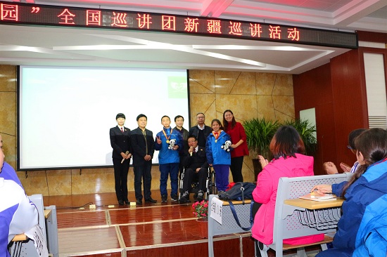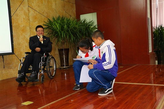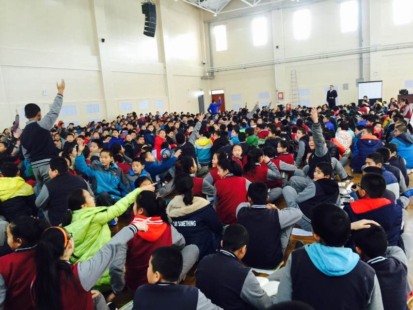當(dāng)孩子們看到坐在輪椅上亮哥忍者疼痛,堅(jiān)持站著講完100多分鐘課程,也被這種精神所感動(dòng)。在當(dāng)我們互動(dòng)提問(wèn)時(shí),場(chǎng)下1400多名同學(xué)的手齊刷刷的舉起來(lái),場(chǎng)面尤為壯觀,我和亮哥一次又一次被同學(xué)們的表現(xiàn)感動(dòng)著。