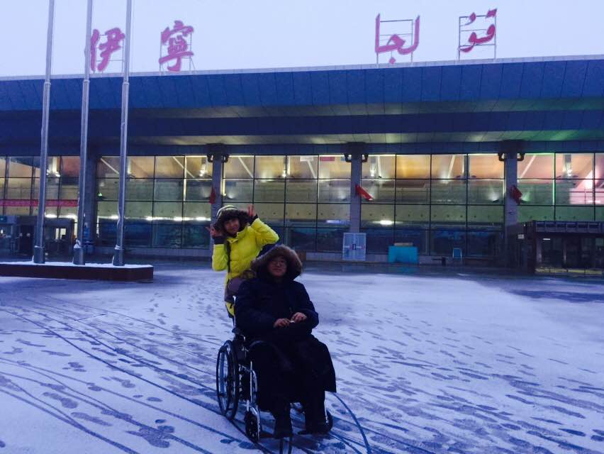 我和王亮到達(dá)伊寧機(jī)場(chǎng)已是晚上7點(diǎn)多,天空飄著大雪,天色有些暗了。王姐和我們都在接機(jī)口互相尋找著對(duì)方,直到接機(jī)口只剩下我們?nèi)?當(dāng)她看到眼前一個(gè)拉著兩個(gè)大大的行李箱,一個(gè)坐在輪椅上的這兩個(gè)全國(guó)巡講團(tuán)成員的樣子,王姐有些震驚,站在原地一句話也沒(méi)有說(shuō)。我主動(dòng)走了過(guò)去……在車上我們聊一路上的趣事、丑事,聊在亮哥的病房做課件差點(diǎn)被關(guān)在醫(yī)院、聊第一次推輪椅的我撞得亮哥心有余悸仍在機(jī)場(chǎng)飛奔、聊巡講、聊我們的工作,直到王姐說(shuō)到不敢相信我們會(huì)推著輪椅來(lái)遙遠(yuǎn)、寒冷的新疆巡講,差點(diǎn)以為是道具。直到此時(shí)我才告訴王姐,亮哥的堅(jiān)持是為了熱愛的未檢事業(yè),為了孩子,為了參加此次巡講選拔賽時(shí)身在北京未能及時(shí)趕回見父親最后一面的遺憾,為了父親電話中那句:"你一定要通過(guò)選拔,到全國(guó)給孩子們講法治課去,這是積福,好事啊!我這里有你媽,不要擔(dān)心"……王姐說(shuō)了一句:“你們太不容易了”,轉(zhuǎn)頭望向窗外悄悄的抹眼淚……