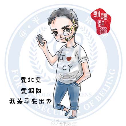 北京警方設(shè)計(jì)的“朝陽(yáng)群眾”卡通形象。北京市公安局官方微博“平安北京”發(fā)