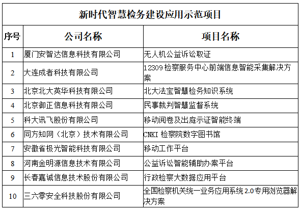 由正義網(wǎng)舉辦的2019“新時代智慧檢務(wù)建設(shè)應(yīng)用”示范項(xiàng)目評選活動已圓滿結(jié)束,最終評選出北京北大英華科技有限公司、衛(wèi)士通信息產(chǎn)業(yè)股份有限公司等10家“新時代智慧檢務(wù)建設(shè)創(chuàng)新產(chǎn)品提供商”;長春嘉誠信息技術(shù)有限公司、安徽省極光智能科技有限公司等10個“新時代智慧檢務(wù)建設(shè)應(yīng)用示范項(xiàng)目”。
