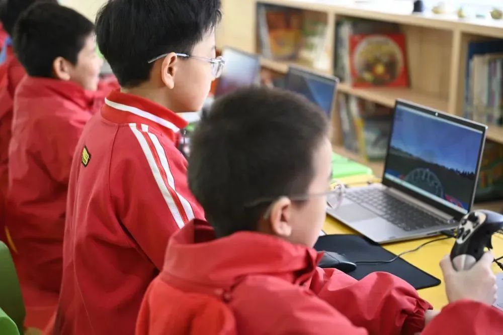 學(xué)生在使用終端設(shè)備與老師互動。新華社記者 周華 攝