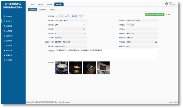 軟件平臺(tái):涉案財(cái)物信息管理系統(tǒng)