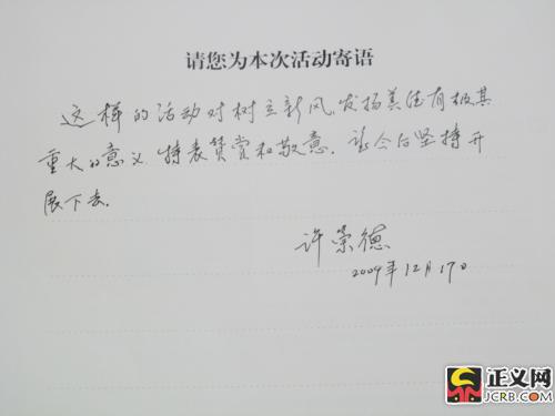 寄語:這樣的活動(dòng)對(duì)樹立新風(fēng),發(fā)揚(yáng)美德有極其重大的意義,特表贊賞和敬意,望今后堅(jiān)持開展下去。