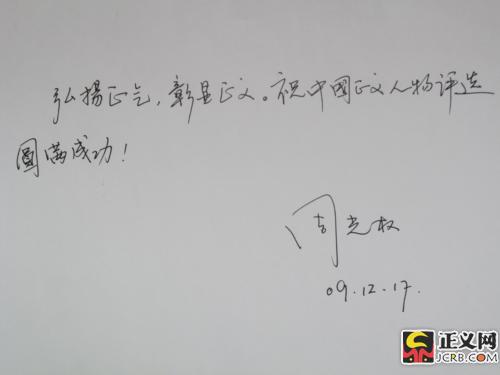 寄語(yǔ):弘揚(yáng)正氣,彰顯正義,祝中國(guó)正義人物評(píng)選圓滿成功!