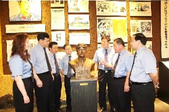 新縣檢察院檢察長余立在“第一公訴人”程玉階塑像前,與公訴科檢察干警一起緬懷先輩。