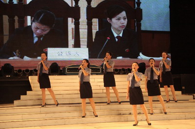 隨后,海曙區(qū)檢察院又與海曙區(qū)文化館積極溝通協(xié)調(diào),從今年3月初就開始著手構(gòu)思節(jié)目的總體方案,4月底完成了詞曲的創(chuàng)作初稿。之后經(jīng)過反復(fù)修改,于5月中旬完成了定稿,隨后立即展開了歌舞的編排練習(xí)。在整個節(jié)目的構(gòu)思過程中,海曙區(qū)檢察院的黨總支、工會、團(tuán)支部一起開會探討,最終決定采用自編自排女聲表演唱的形式。在詞曲的創(chuàng)作過程中,為了使歌詞能夠更加準(zhǔn)確生動、曲調(diào)能夠更加瑯瑯上口,女檢察官們又經(jīng)常聚集在一起對歌曲進(jìn)行反復(fù)推敲,多次修改潤色,最終完成定稿。在舞蹈的排演過程中,參與演出的女檢察官們對舞蹈動作不斷地進(jìn)行嘗試、探討、修改,以求達(dá)到最好的演出效果。