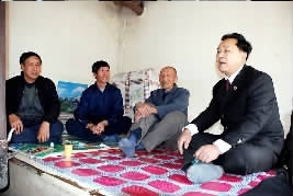 張章寶(右一)深入到村民炕頭查案。高順華攝