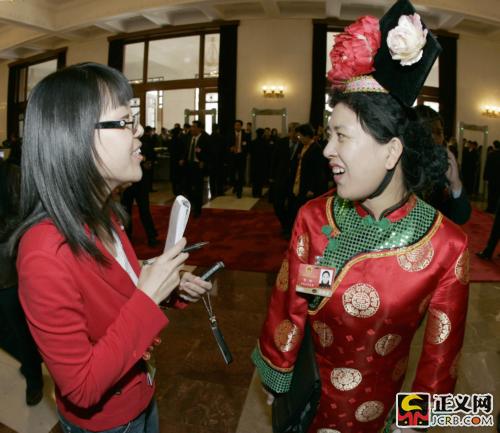 3月9日上午,十一屆全國(guó)人大第二次會(huì)議舉行第二次全體會(huì)議。來(lái)自黑龍江的滿(mǎn)族代表那輝在接受記者采訪。