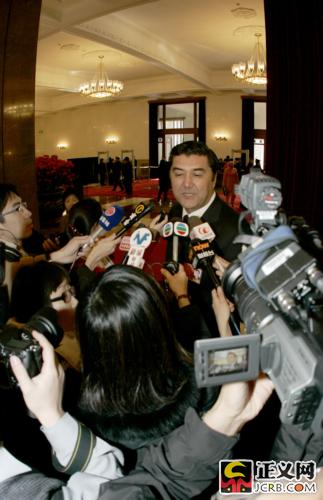 3月9日上午,十一屆全國(guó)人大第二次會(huì)議舉行第二次全體會(huì)議。新疆代表團(tuán)代表在接受記者采訪。