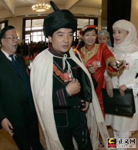3月9日上午,十一屆全國人大第二次會議舉行第二次全體會議。代表們相互合影留念。