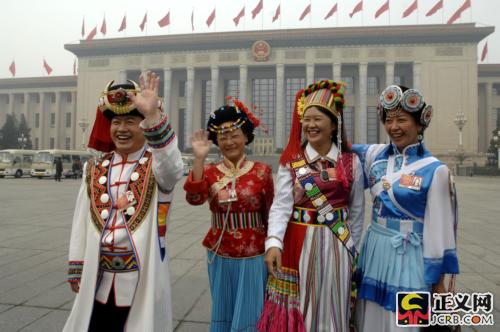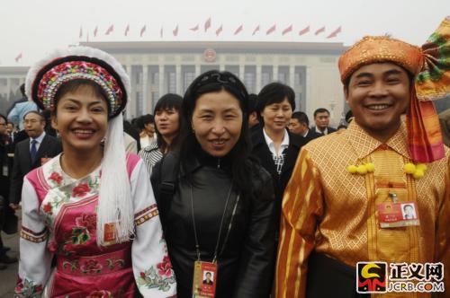 2009年3月4日,十一屆全國人大二次會議預(yù)備會議在北京人民大會堂舉行,少數(shù)民族代表盛裝出席。 程丁/攝