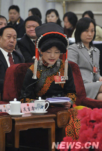 一位少數(shù)民族人大代表在發(fā)言。新華網(wǎng) 陳濤 攝