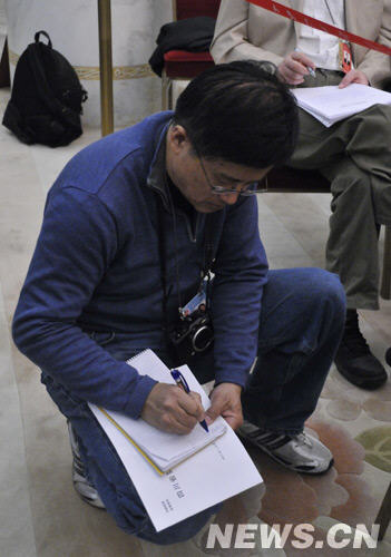 一位記者在認(rèn)真記錄。新華網(wǎng) 陳濤 攝