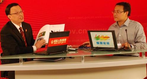 最高人民法院新聞發(fā)言人、辦公廳副主任孫軍工(左)與網(wǎng)友在線交流