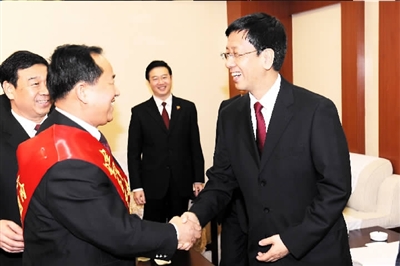曹建明檢察長會見全國模范檢察官張章寶 肖杰攝