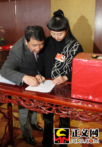 有關(guān)媒體報(bào)道貧困地區(qū)十萬小學(xué)生中有九萬手中無字典現(xiàn)象,希望能得到社會(huì)幫助。3月12日,在姜昆委員的呼吁下,中國(guó)文學(xué)藝術(shù)基金會(huì)在代表、委員中間開展向貧困地區(qū)小學(xué)獻(xiàn)愛心“字典援助活動(dòng)”,代表委員們紛紛慷慨解囊,積極捐款捐書。圖為“字典援助活動(dòng)”現(xiàn)場(chǎng)。徐伯黎/攝
