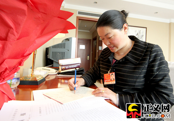 每一次開會,曉紅都會認(rèn)真準(zhǔn)備發(fā)言稿、認(rèn)真聆聽代表們的發(fā)言。傅偉/攝