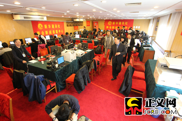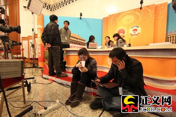 法制網(wǎng)在人民大會(huì)堂開設(shè)的工作室。傅偉/攝