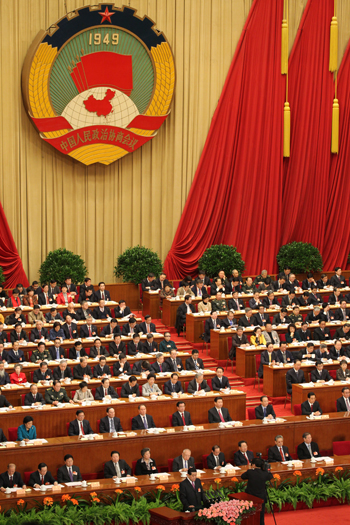 全國(guó)政協(xié)十一屆四次會(huì)議3月3日下午在北京人民大會(huì)堂開(kāi)幕。會(huì)議審議通過(guò)了政協(xié)第十一屆全國(guó)委員會(huì)第四次會(huì)議議程,賈慶林主席在會(huì)上作了政協(xié)全國(guó)委員會(huì)常務(wù)委員會(huì)工作報(bào)告,在報(bào)告中他對(duì)2010年政協(xié)工作進(jìn)行了回顧,并介紹了2011年的工作部署,通過(guò)14大關(guān)鍵詞彰顯了政協(xié)的大作為。徐伯黎/攝