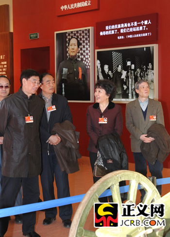 3月9日下午,政協(xié)委員們利用休會(huì)機(jī)會(huì)來(lái)到中國(guó)國(guó)家博物館集體參觀了《復(fù)興之路》大型主題展覽。展覽用大量的史料、文物、照片和場(chǎng)景復(fù)原,展現(xiàn)了共產(chǎn)黨領(lǐng)導(dǎo)各族人民爭(zhēng)取民族獨(dú)立、人民解放、國(guó)家富強(qiáng)、人民幸福的光輝歷程。