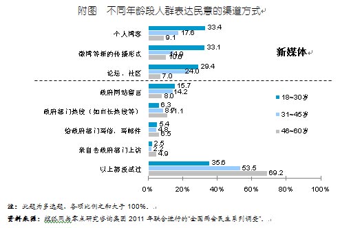 民意表達方式:青年人選擇博與微博,中年人更多去論壇