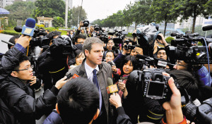 庭審結束后,一輛掛外國領事館牌照的小車從法院內駛出,記者們猜測這是美國領事館的車。