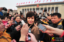 吉林代表團(tuán)代表劉春梅在大會(huì)堂前接受記者采訪,并為現(xiàn)場(chǎng)記者演唱她的成名作。正義網(wǎng)記者 程丁 攝