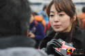2012年3月3日,西班牙電視臺記者阿麗沙在人民大會堂前緊張采訪。當(dāng)日,全國政協(xié)十一屆五次會議在人民大會堂開幕。正義網(wǎng)記者肖杰 攝