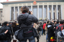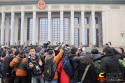 2012年3月3日,中外記者在人民大會堂前緊張采訪。當(dāng)日,全國政協(xié)十一屆五次會議在人民大會堂開幕。正義網(wǎng)記者肖杰 攝