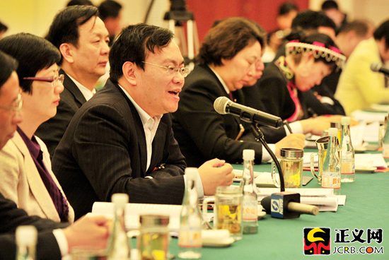 今天下午,福建代表團舉行全體會議審議兩高報告全國人大代表、華僑大學(xué)法學(xué)院副院長戴仲川在發(fā)言時說,今年兩高報告亮點多,內(nèi)容具體詳實。報告回應(yīng)了群眾對司法公正的訴求,也反映了司法機關(guān)在各方面所做的不懈努力。正義網(wǎng)記者 程丁 攝