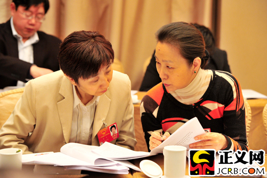 上午小組會議,奚美娟與代表討論刑訴法草案。正義網(wǎng)記者 程丁/攝