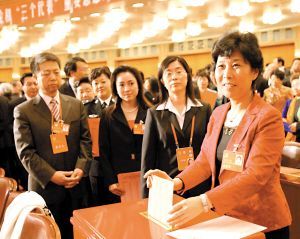 十七大代表在會場投票