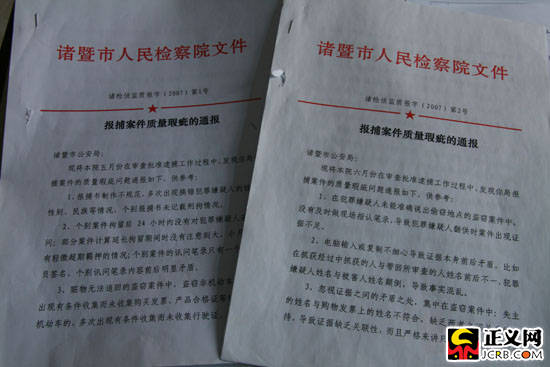 諸暨市人民檢察院自2007年下半年開始實行案件質(zhì)量瑕疵通報機制,該機制是檢察院院在辦理批捕、起訴案件時,對偵查機關(guān)在執(zhí)法過程中出現(xiàn)的一些輕微違法進行收集并定期通報予以糾正的一種監(jiān)督方法。朱晶/攝