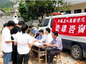上杭縣檢察院干警深入田間地頭宣傳法治。